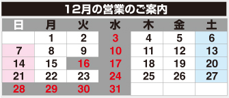 ■年末年始休業のご案内 12/28~1/4まで休業させていただきます。 点検、整備はお早めにお申し付けください。 |